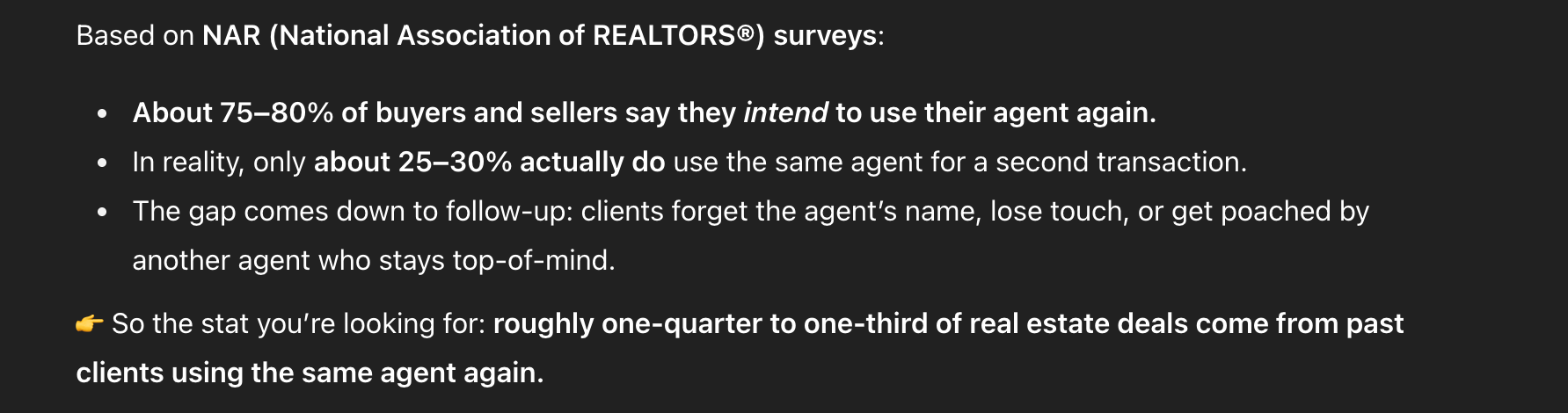 Don't have a CRM, or don't use automations? Just send us your CSV/Excel export of your sphere/past cilents and we will set up automatic birthday, house anniversary & neighbor sold text messages